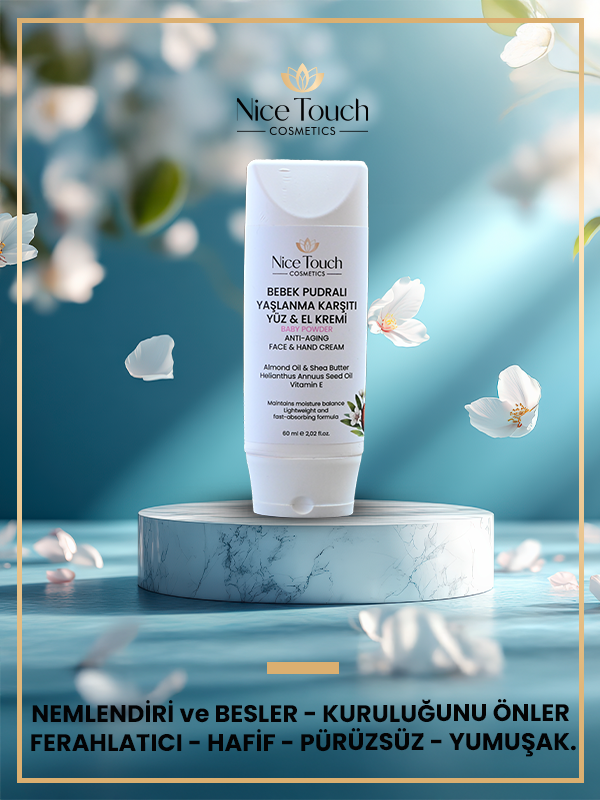 Nice Touch Bebek Pudralı Yaşlanma Karşıtı Yüz & El Kremi – Nemlendirici, Onarıcı, Anti-Aging Bakım 60 Ml